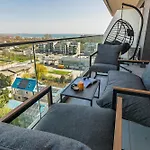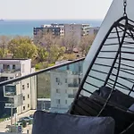Om van uw vakantie in Năvodari te genieten, verblijf in 1-slaapkamer Japandi - Odyssey Pool & Spa Resort Năvodari, gelegen op een rijafstand van 10 minuten van Oha Beach en op 4 km van Fratelli Beach & Club. Dit 50 m^2 grote appartement heeft een terras met uitzicht op de zee